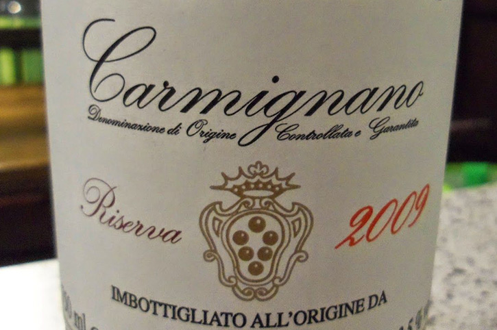 Carmignano (base and riserva) is made from 50-90% Sangiovese grapes, 10-20% Cabernet Sauvignon and/or Cabernet Franc, up to 20% Canaiolo Nero and up to 10%Trebbiano Toscano and/or Malvasia and/or Canaiolo Bianco.Carmignano DOCG wine is produced exclusively in the municipal territories of Carmignano and Poggio a Caiano.